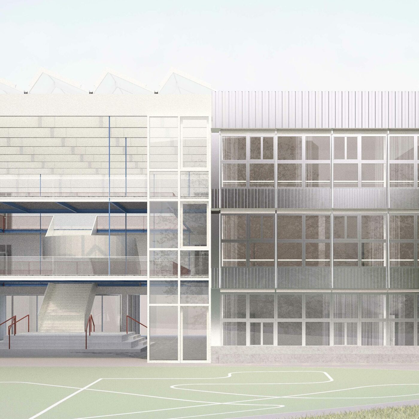 Wir freuen uns über den ersten Preis im offenen Wettbewerb Sporthalle Seefeld in Zürich. Die Erweiterung des historischen Schulgebäudes umfasst zwei Sporthallen, Räume für die Tages- und Musikschule, sowie eine Aula mit Caféteria.